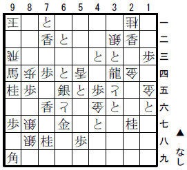 将棋図巧の中で有名な作品は、98番「裸玉(盤上に玉のみ)」、99番「煙」、100番「寿(なんと611手詰!)」である。「煙」の図はこうなっている。