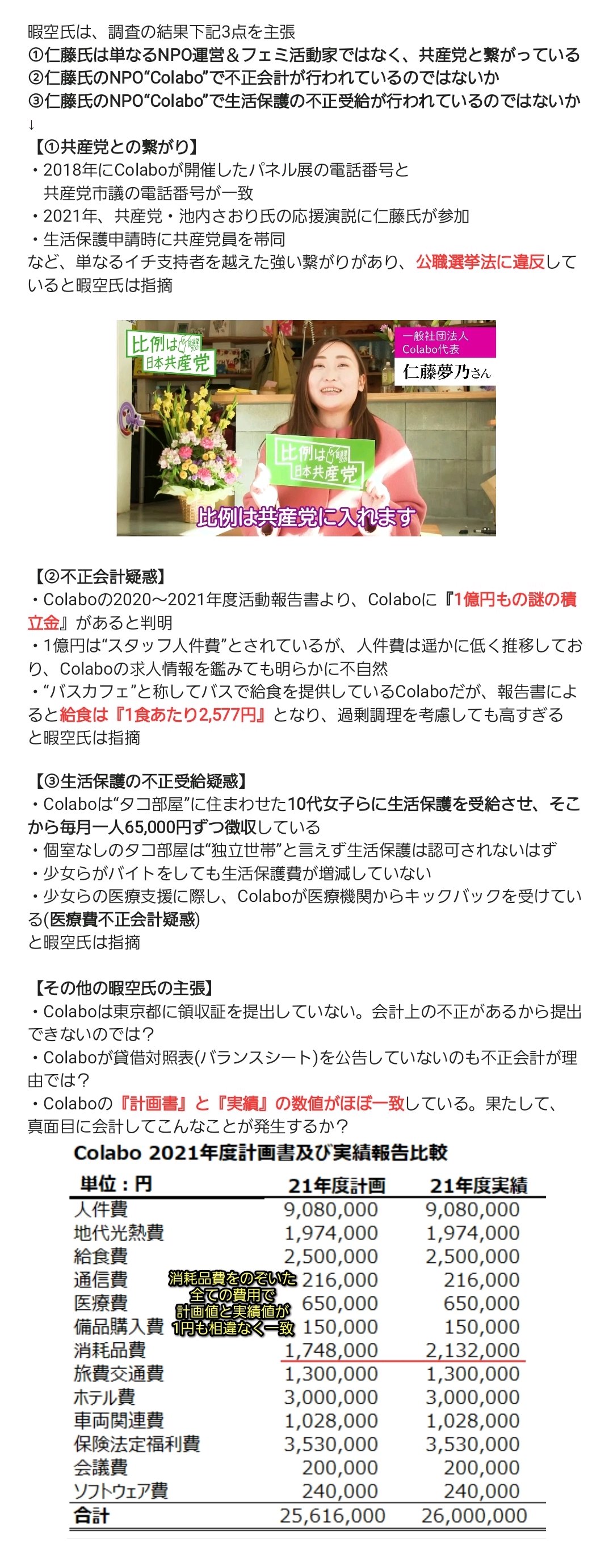 そのことが暇空氏から指摘されると、弁護団が登場し訴訟するぞと脅しにかかったようだ。今必要なのは弁護士の集団じゃなく、普通のまともな会計士のはずなんだけどな。